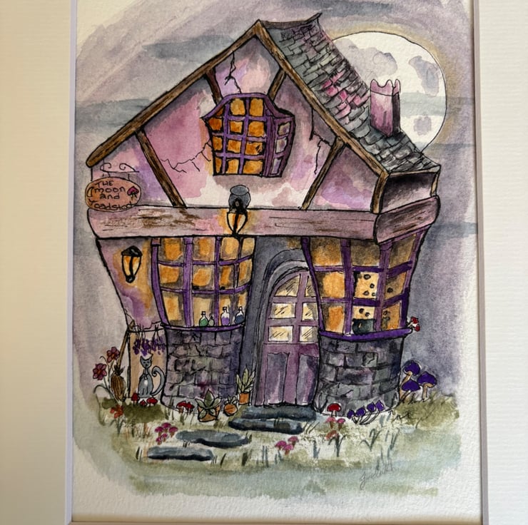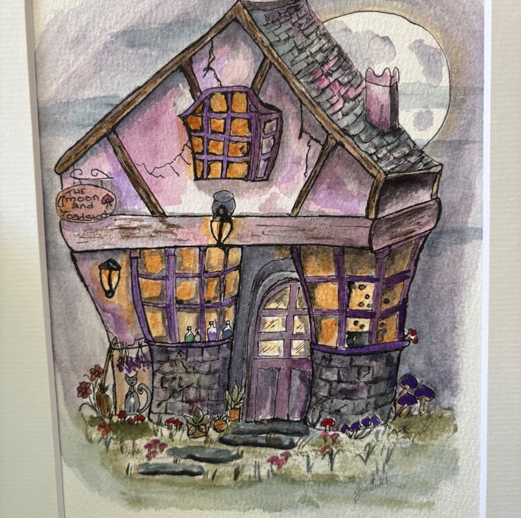 The moon and toadstool watercolour cottage