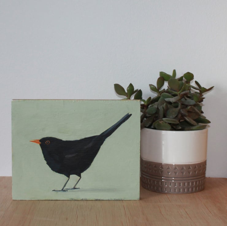 This is an original painting of a blackbird on reclaimed plywood and is inspired by one of my own photographs. It has been painted in acrylics and sealed with a thin protective coat of matt varnish.