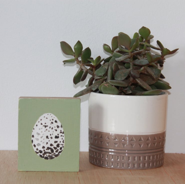 This is an original painting of a house sparrow egg on reclaimed plywood. It has been painted in acrylics and sealed with a thin protective coat of matt varnish.
