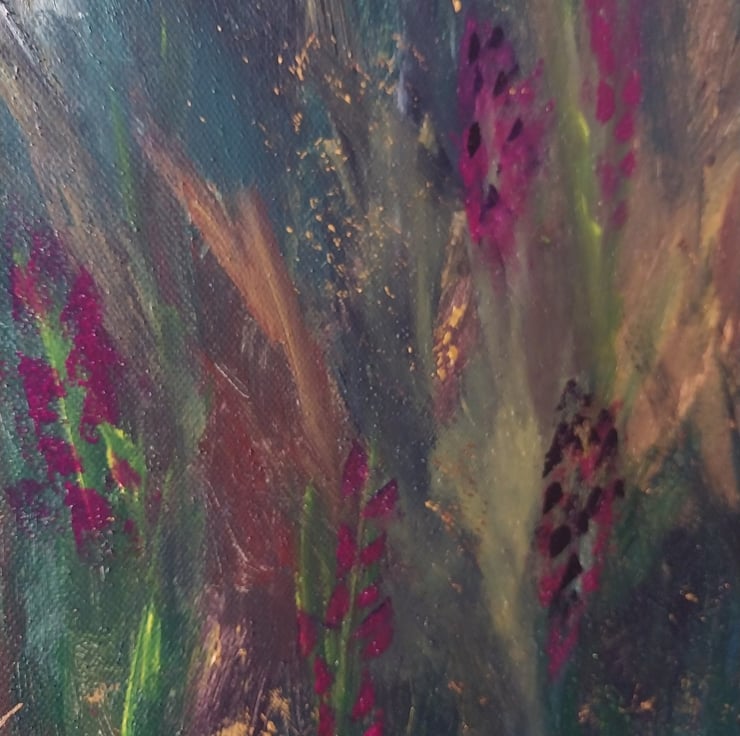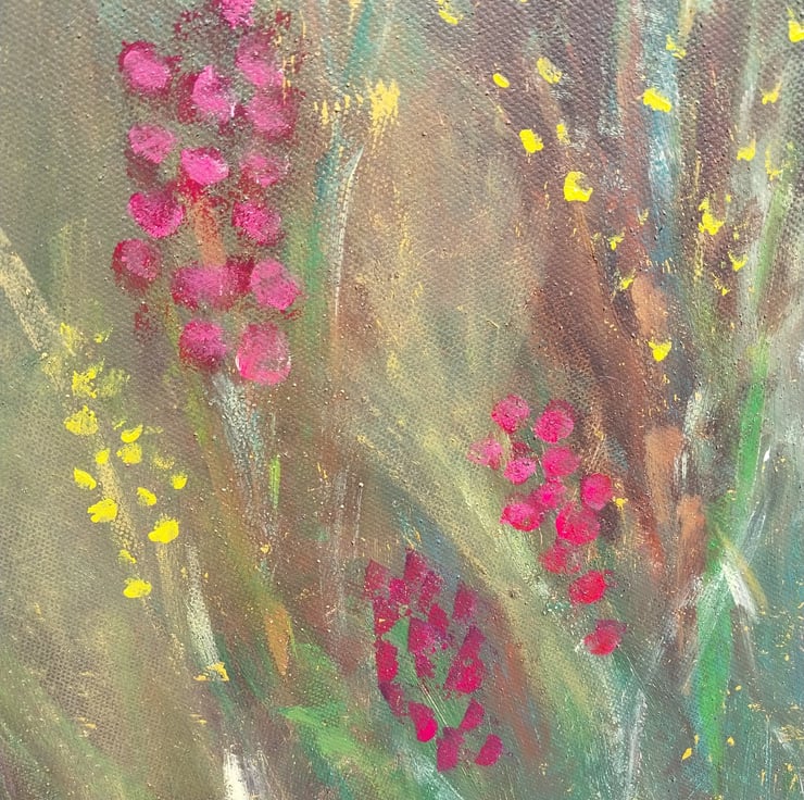 This original acrylic painting will transport you to the wilderness. Feel the sun on your skin and summer wind in your hair. Smell the wildflowers and listen to the grasshopper's song.