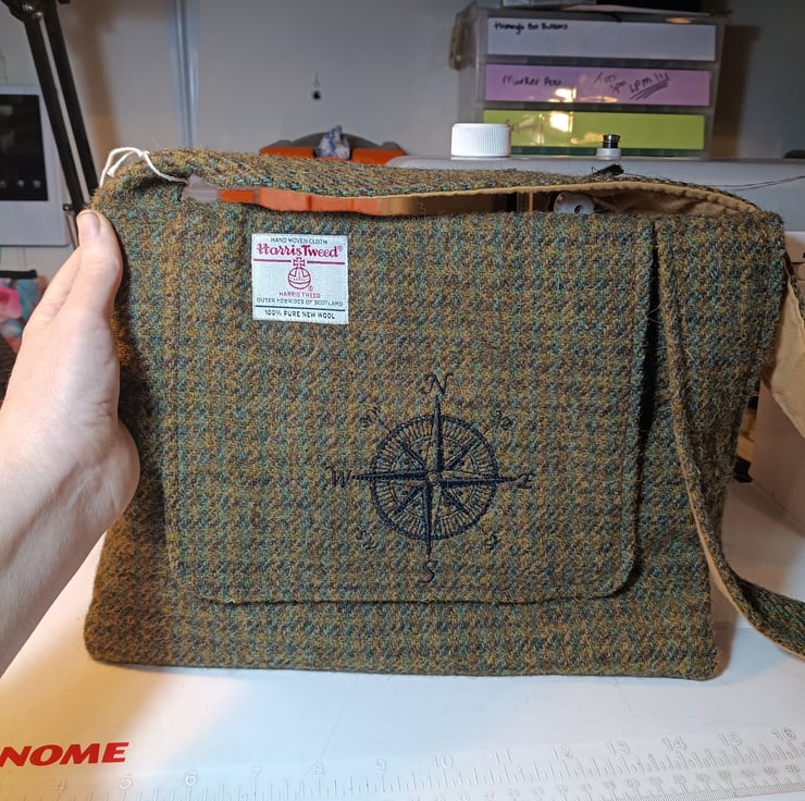 I am a designer and a maker of one of kind unique Harris tweed bags. This bag has a lovely mix of bold colours coupled with the nautical compass embroidery.