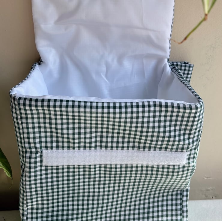 Handmade bottle green and white gingham Insulated Lunch Bag - Lightweight & Customisable