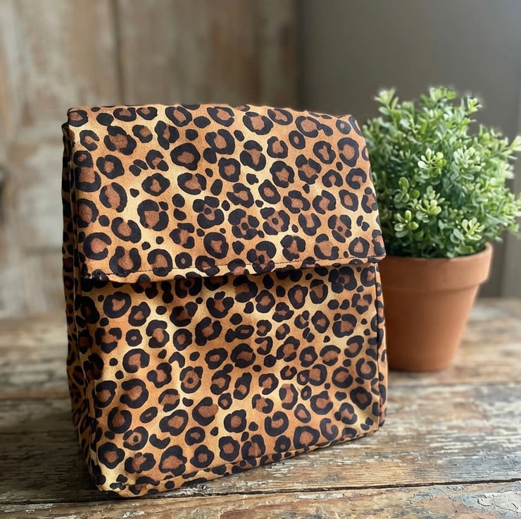 Handmade leopard print Insulated lunch bag - Lightweight & Customisable