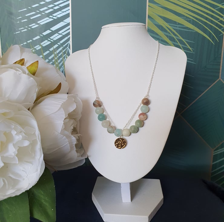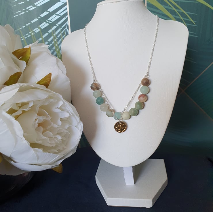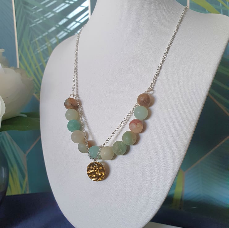 Frosted amazonite is said to promote truthful communication, ease anxiety and provide emotional balance.
