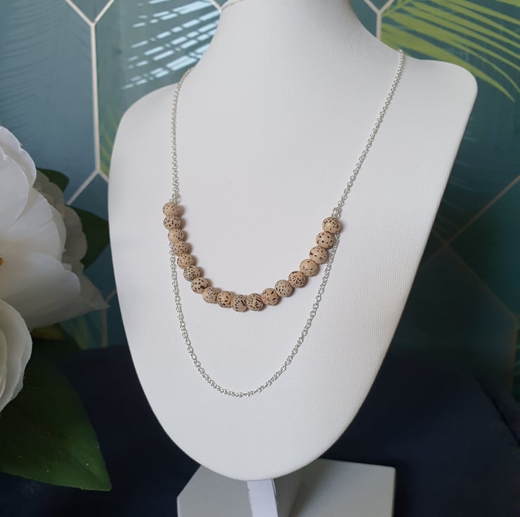 Mainly used by buddhists for prayer, these beads can be used for any type of jewellery and are especially appreciated on this necklace.