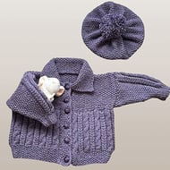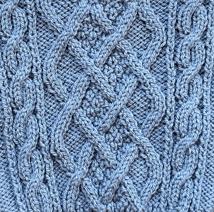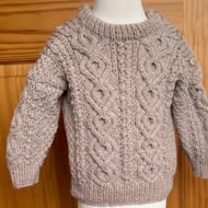The Cable Pattern is seen on the front, back and set-in sleeves, with single ribbing to the lower edge, crew neck and sleeve cuffs