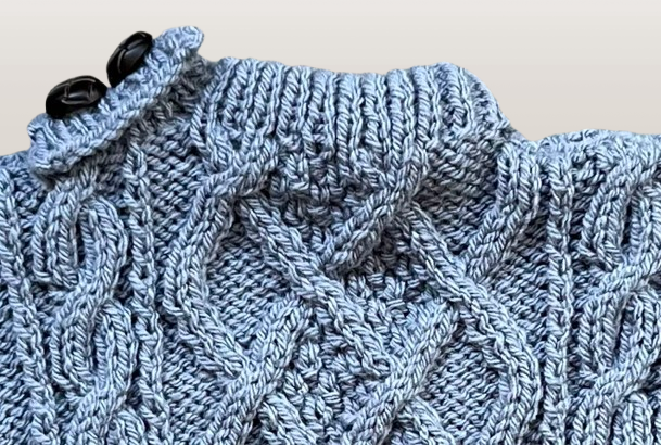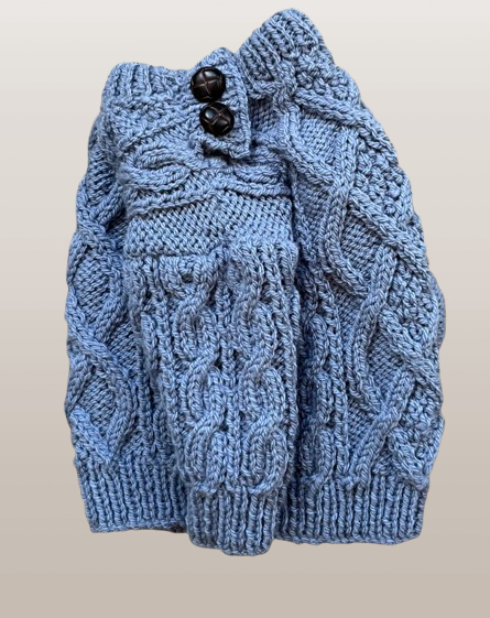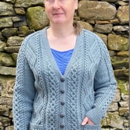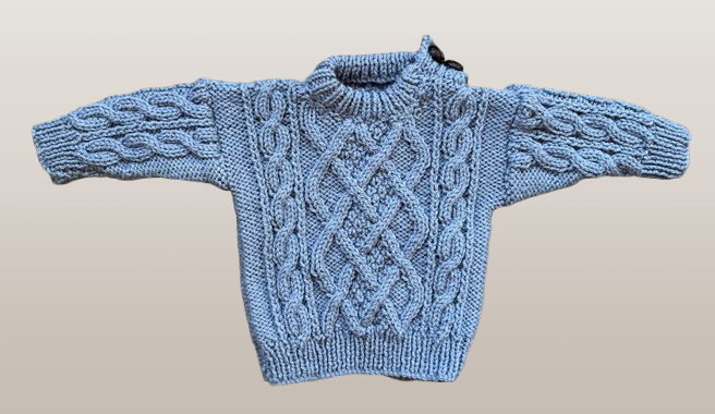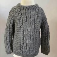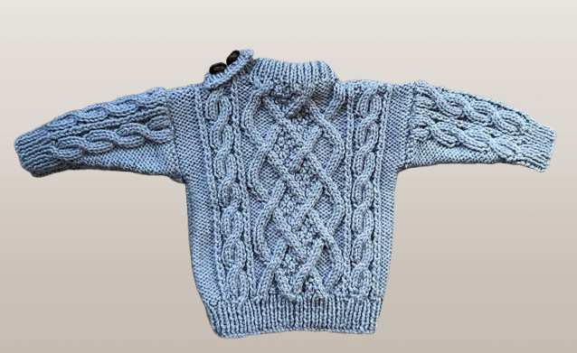 Hand Knitted Cable Pattern jumper Hand Knitted in a blend of Wool 20% and Acrylic Yarn 80% in a mid blue,