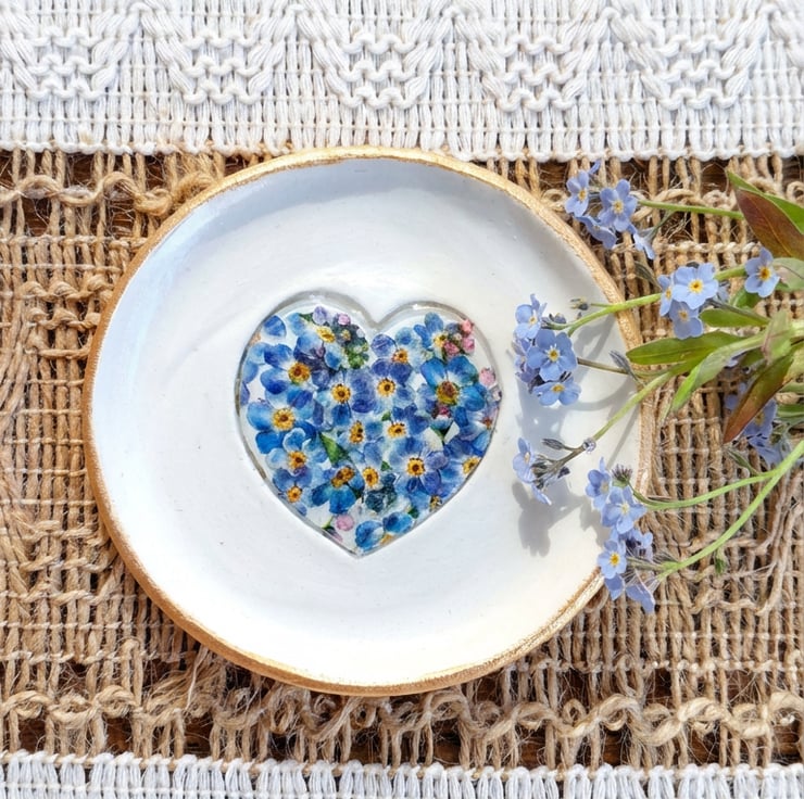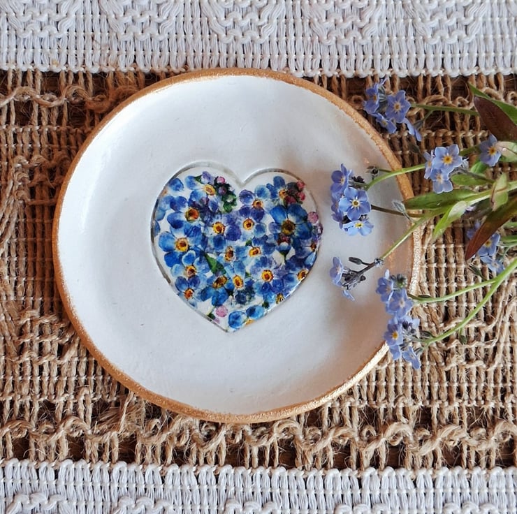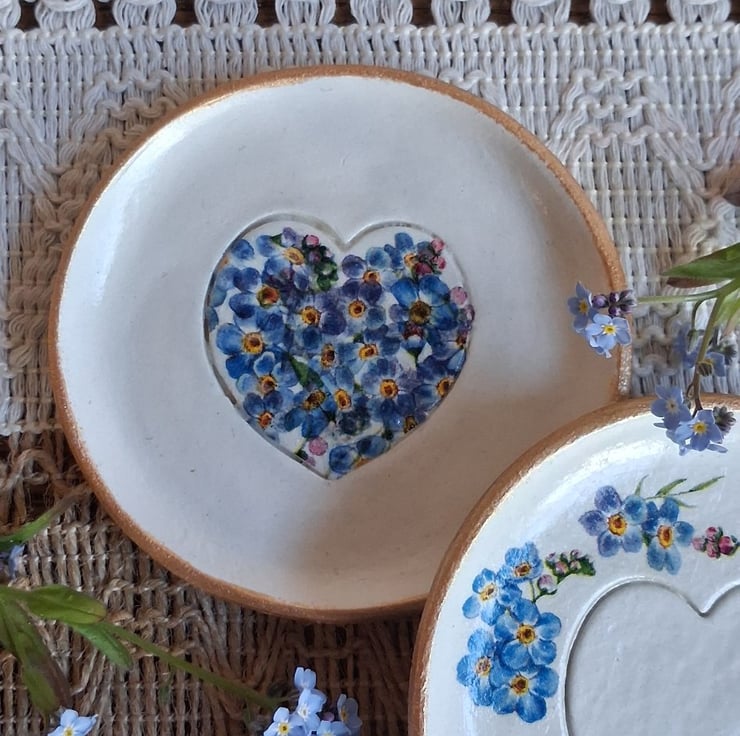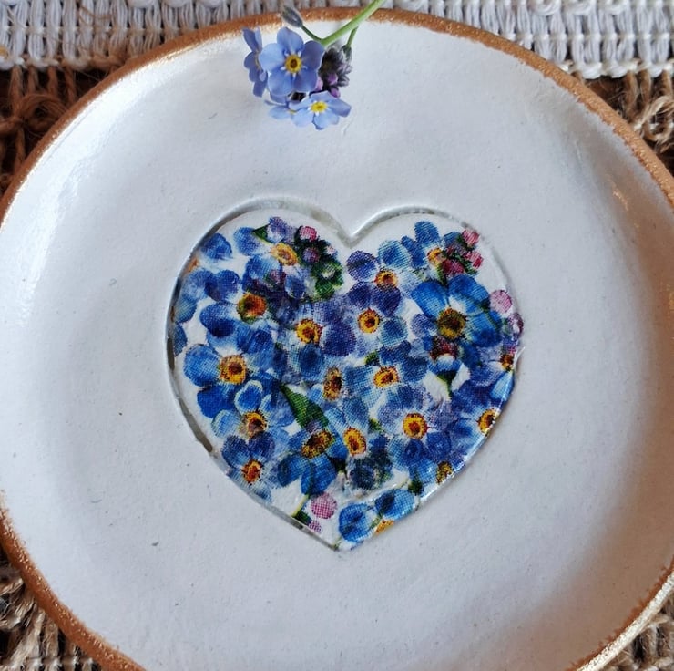 This has been decorated with pretty floral forget me nots inside a heart.