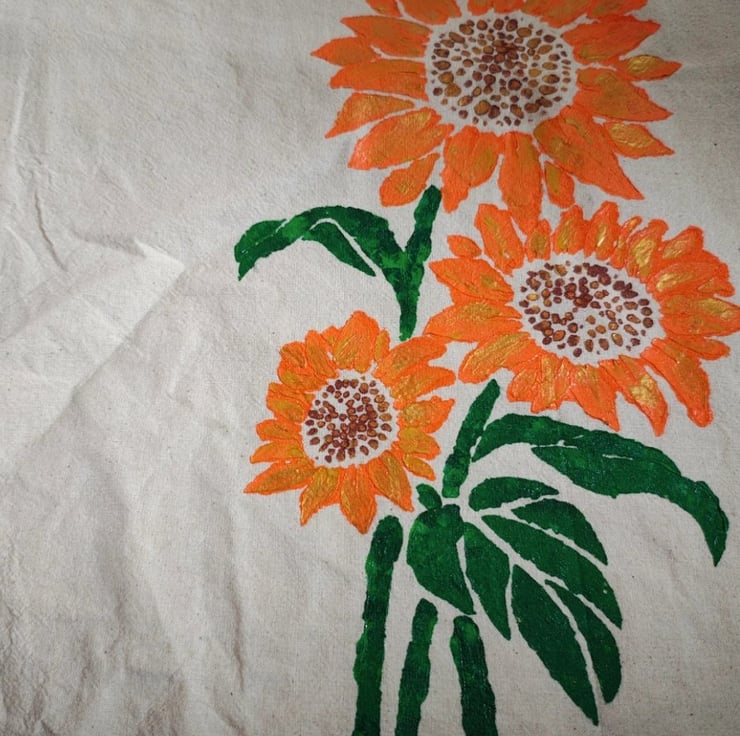 Cotton tote bag with a great design hand painted on the front. A great bag for carrying your stuff to school or as a gift bag.