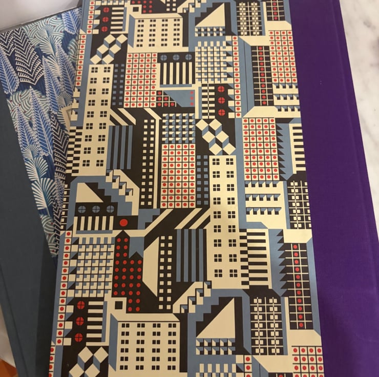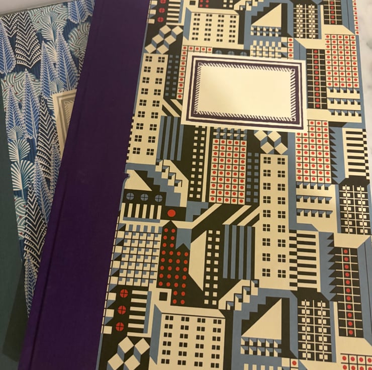 This one has a purple bookcloth spine and a wonderful cover paper designed by the talented Cressida Bell. Finished with a label from Cambridge Imprint.