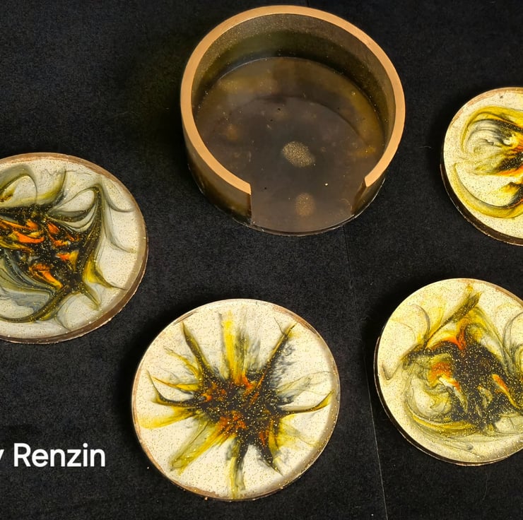 Protect your surfaces in style with this handmade resin coaster set, featuring bold, artistic floral-inspired designs. Each coaster showcases a unique bloom effect created through resin art techniques.