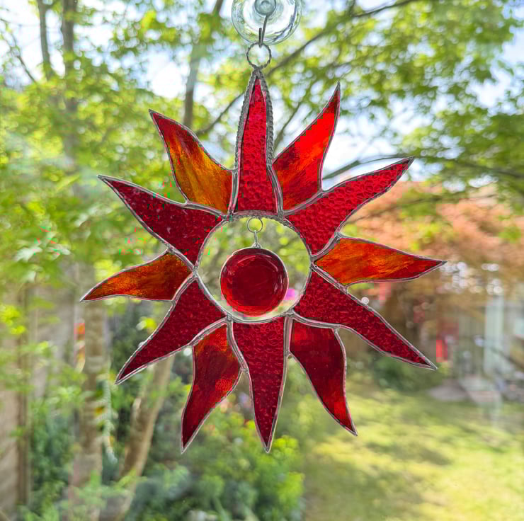Sunburst suncatcher made in beautiful stained glass by Carole's Glass.