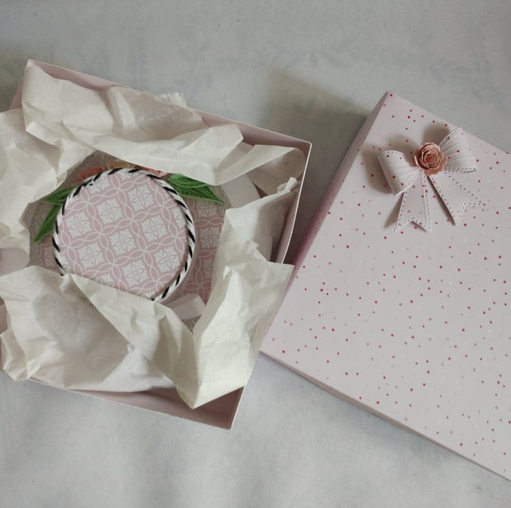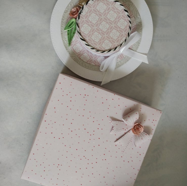 I've also made a lovely pink box with a matching bow and another rolled rose to decorate.