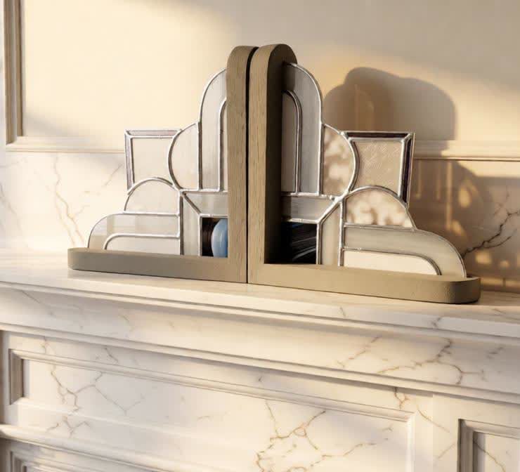 The neutral colours are ideal for any colour scheme in the home. The bookends can be lit from behind with tealights, or placed in a bright window for the colour to shine through.