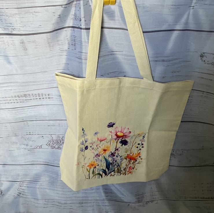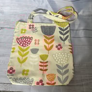Up cycle tote bag from Irish linen with a floral print on