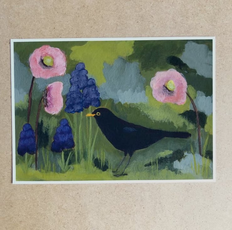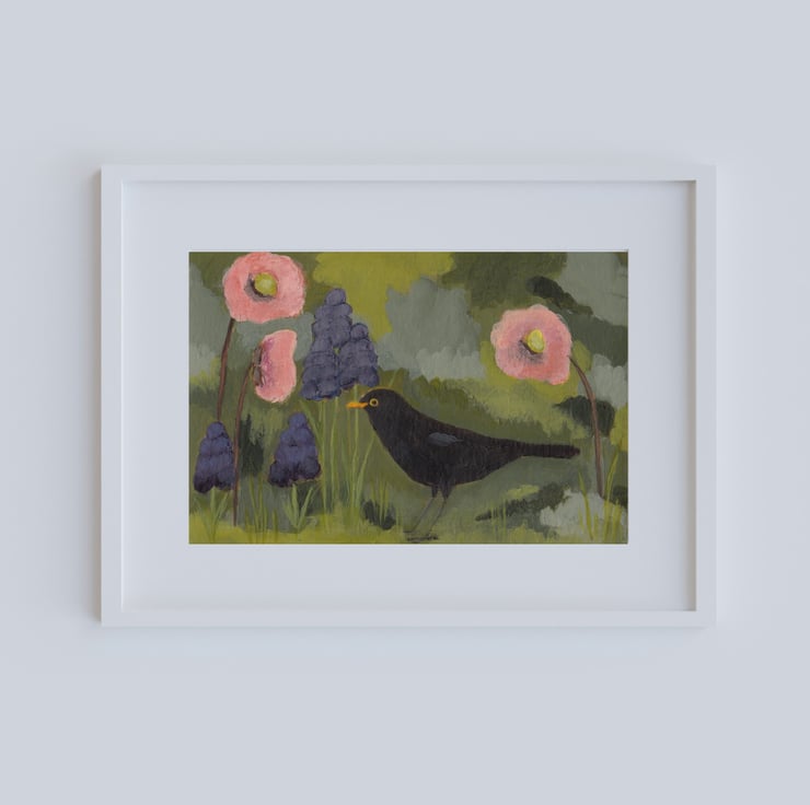 Blackbird Art Print - this is a fine art print of an original acrylic painting by me, inspired by a photo I took in my parents garden.