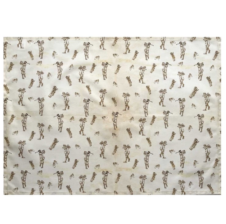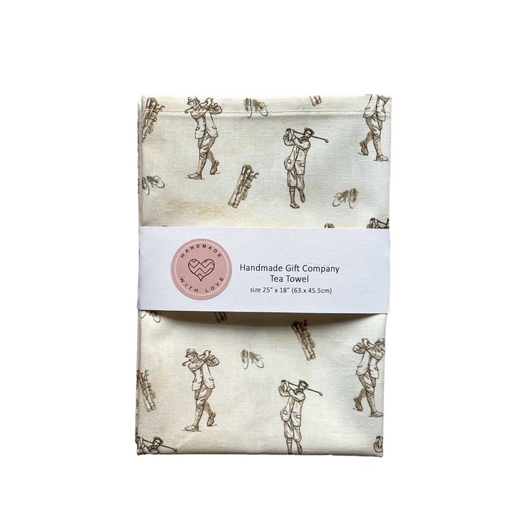 Handmade tea towel with lovely Vintage Golf design on a cotton beige fabric