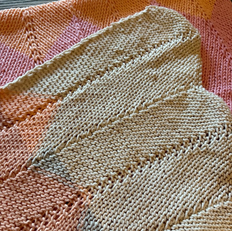 This blanket measures 60cm x 96cm. The colour combination reminds me of a fruit salad sweets.