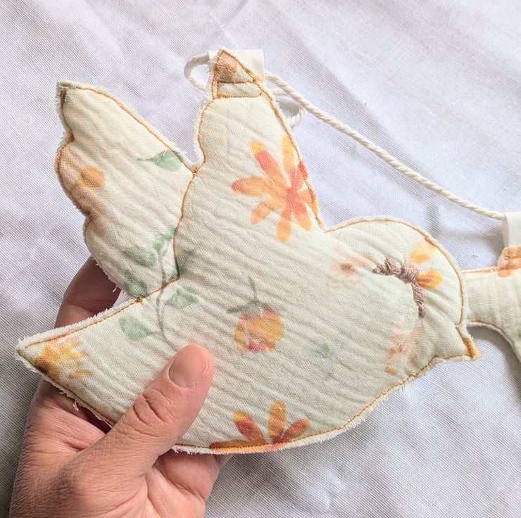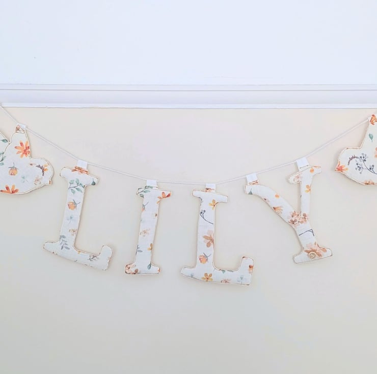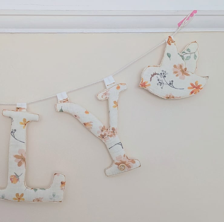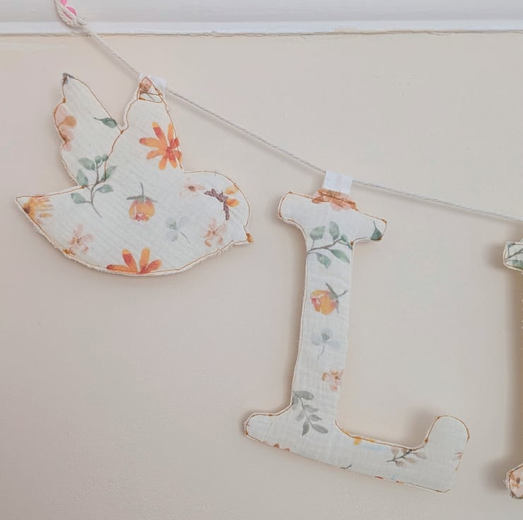 Personalised Floral Name Garland - Fabric Dove Nursery Decor - Muslin Baby Gift
