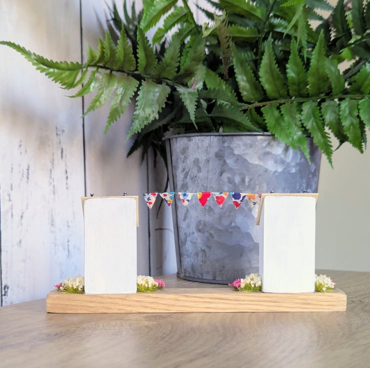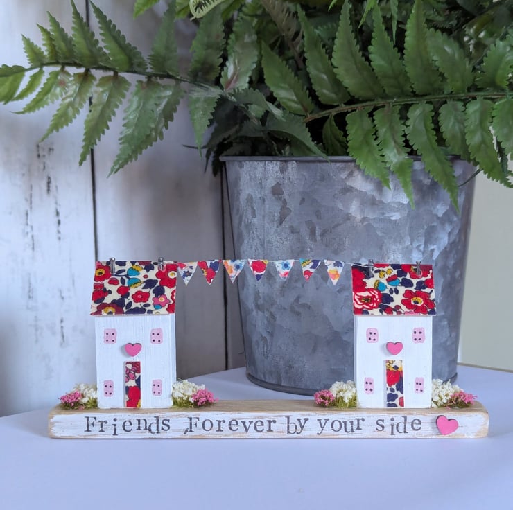 There is Liberty fabric bunting strung from the chimneys and the houses are surrounded by pretty flowers.