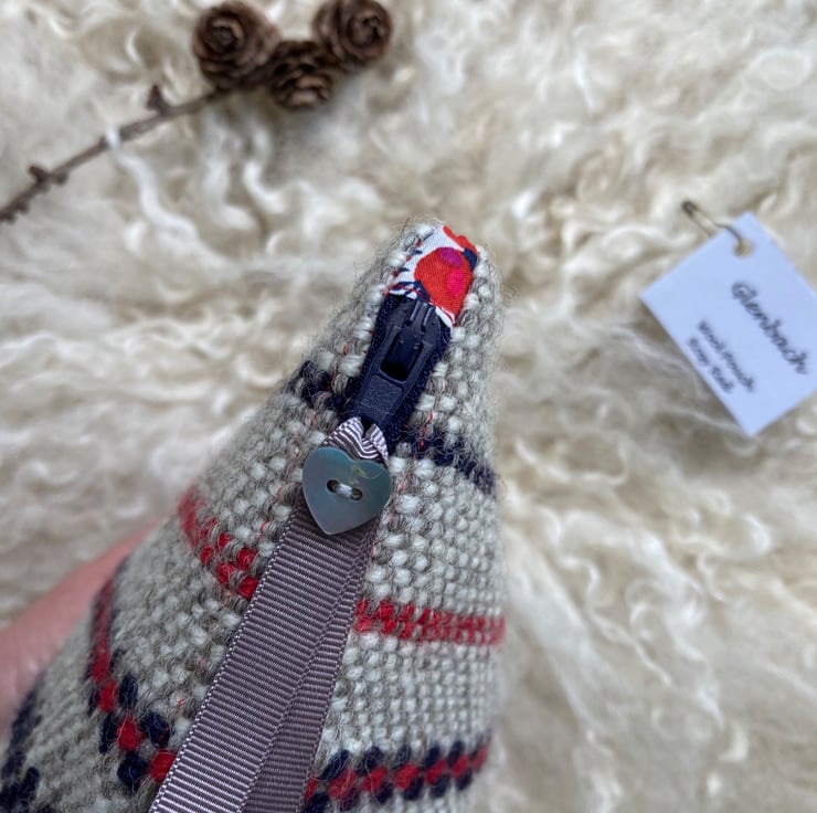 From small girls we’ve always loved creating items with fabric, so to use our own handwoven wool cloth is very special to us. This Wool Pouch is such a handy sized bag, there’s so many ways to use it! It’d great for storing craft, knitting & stitching on the go and a handy size travel bag too.