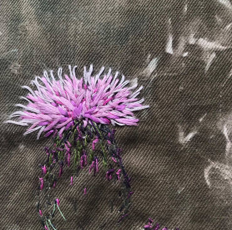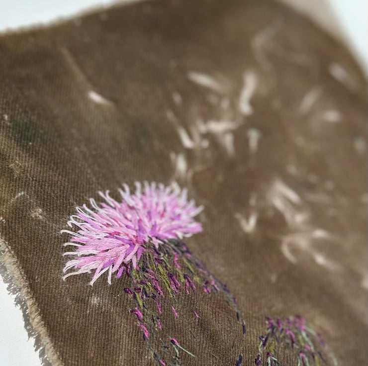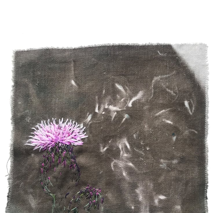 Plants for pollinators 1 - Creeping Thistle - Cyanotype & stitch
