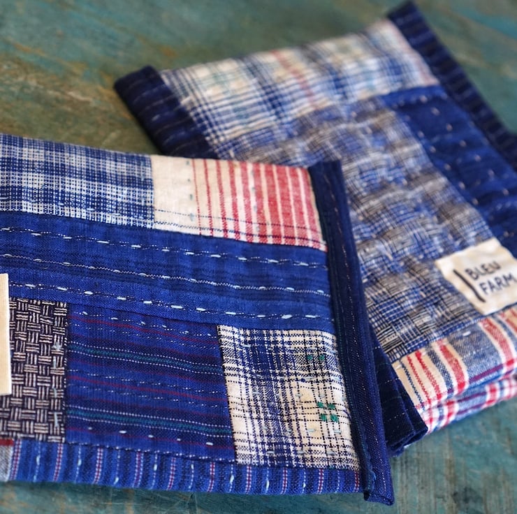 Hi, welcome to Bleu Farm! Every piece here is one-of-a-kind. The vintage cotton fabrics that I use are handwoven decades ago with natural slubs, adding a unique texture and character to each item. Small variations and imperfections are part of the charm of handmade goods, a reminder that there's beauty in simplicity.