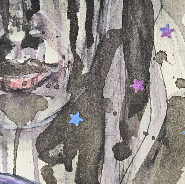 This artwork is entirely hand painted on high quality A4 fine art paper using ink watercolour, and mixed media textures. Every mark drip and shimmer is unique to this piece.