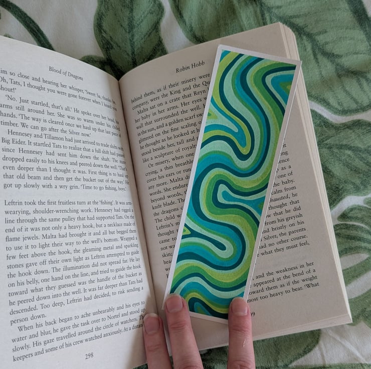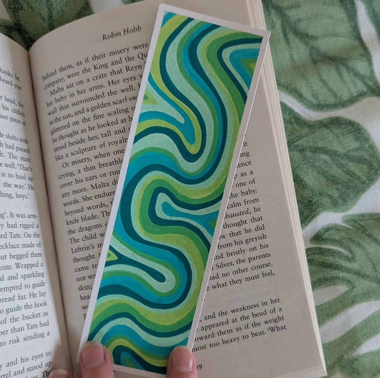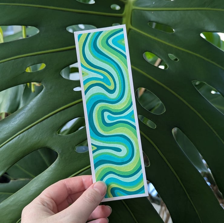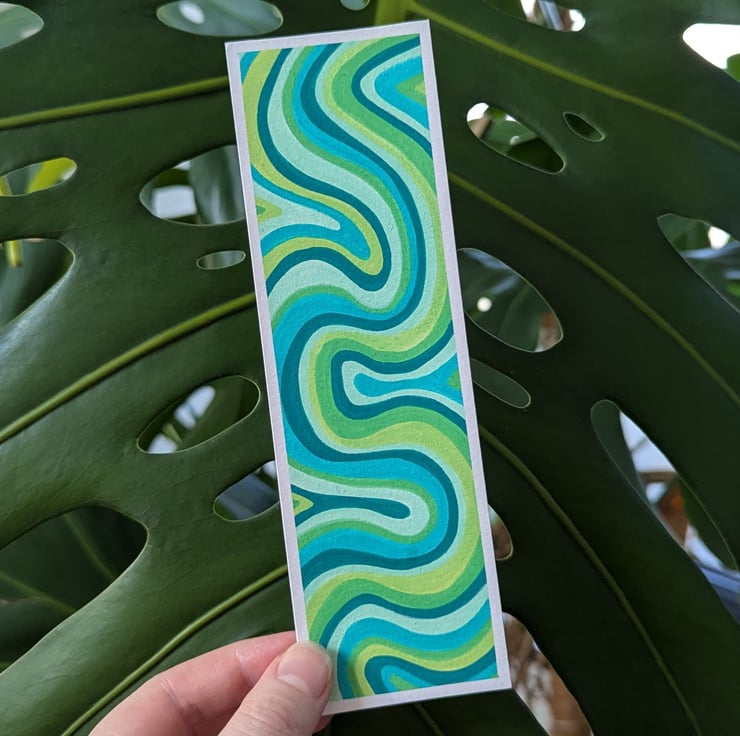 Handmade swirly bookmark in a green colour palette, each bookmark is a unique, one of a kind design.