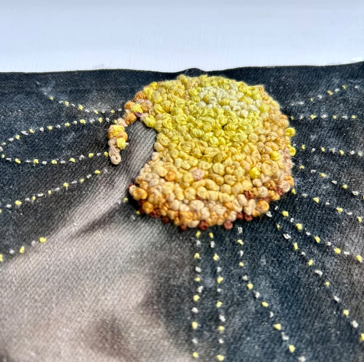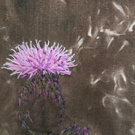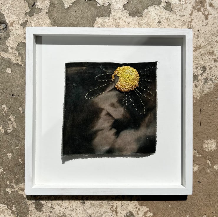 This piece is called Ragwort 2 and is one of a series of works made to highlight the importance of 'weeds' for our amazing pollinators. Ragwort is one of the plants vilified in the Weeds Act of 1959 but is a vitally important source of nectar for our bees and other pollinators.