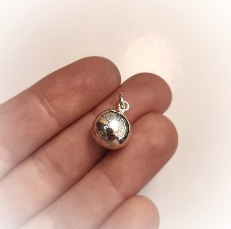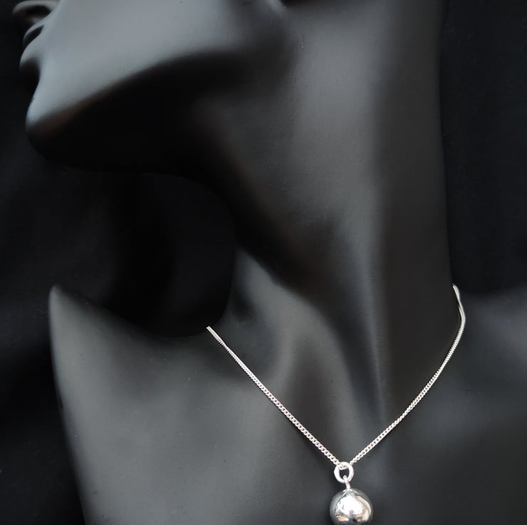 Highly polished ball pendant with ball 1.2cm in diameter. Easy to wear and beautifully simple design.
