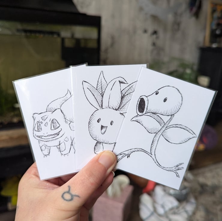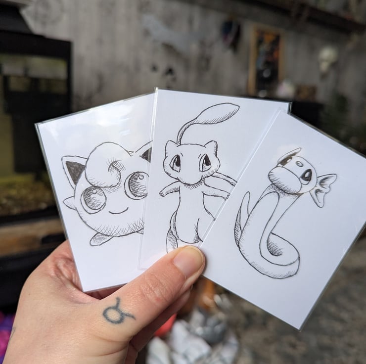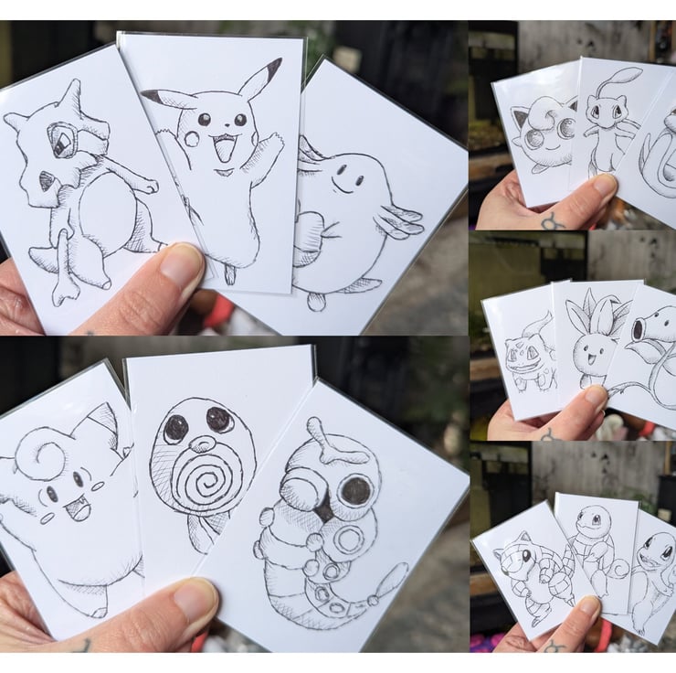 This is a set of 15 hand-sketched Pokemon ACEOs.