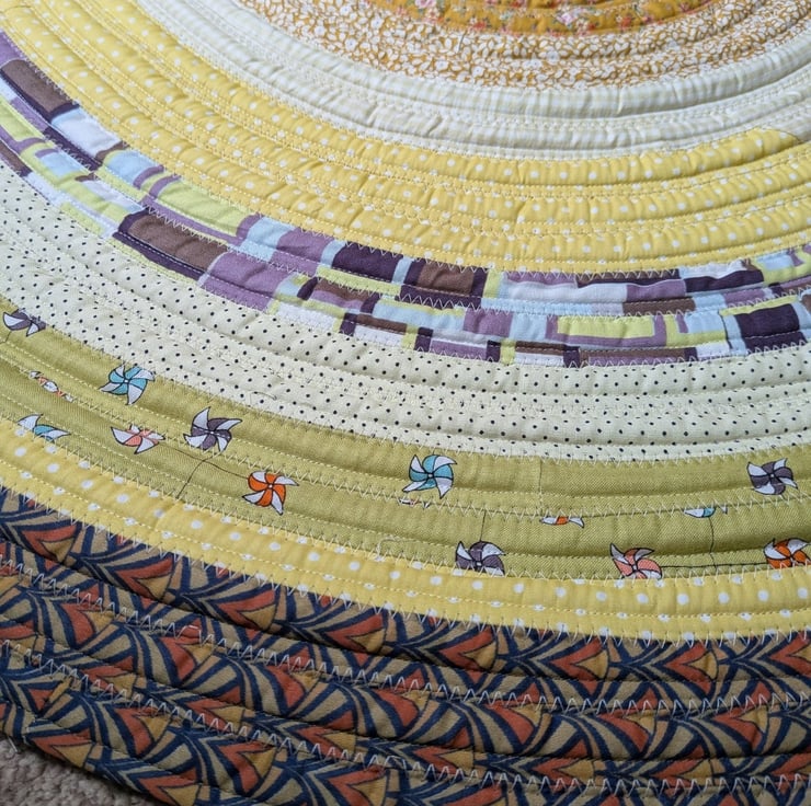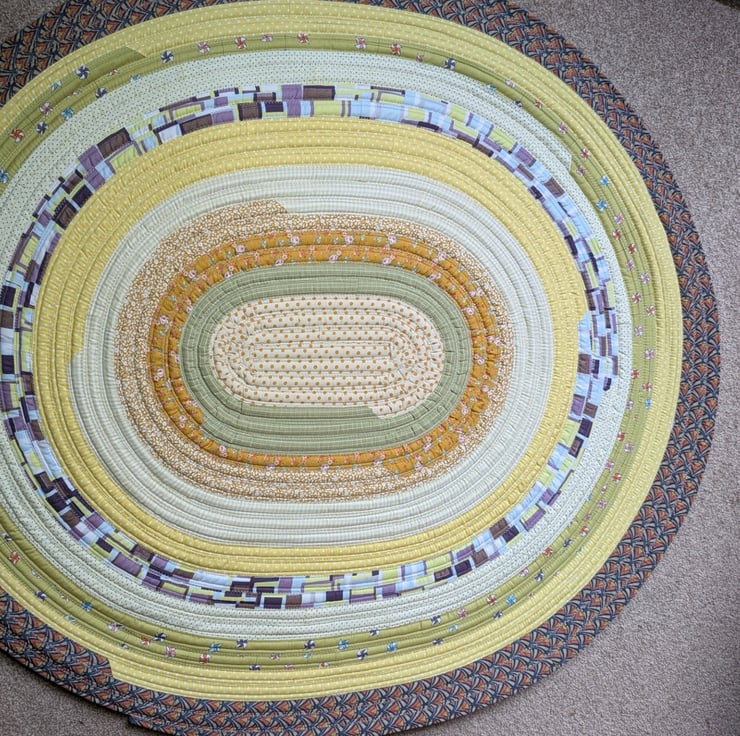 Oval shaped. Original jelly roll rug - 38" x 34" (96.5cm x 8.5 cm) approx.
