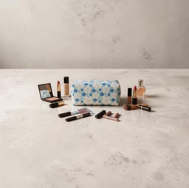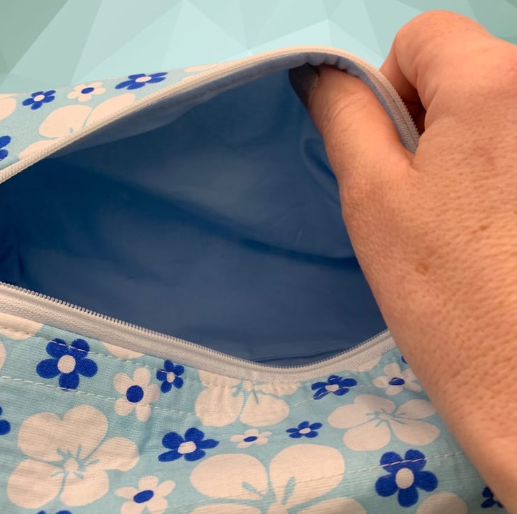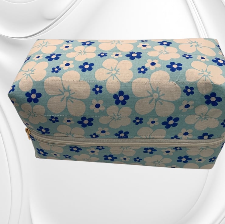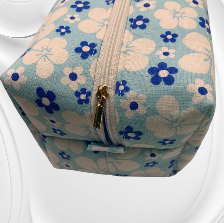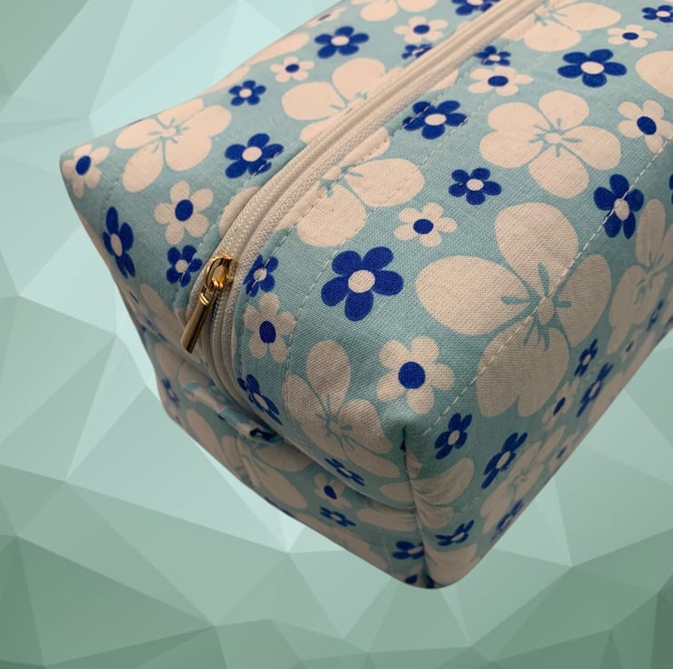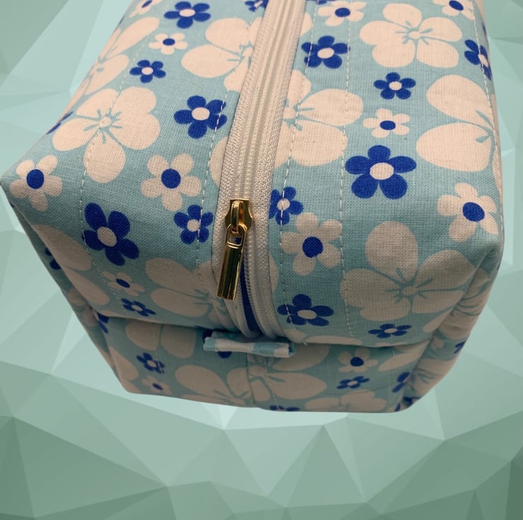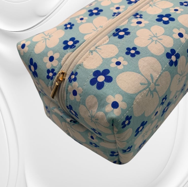 Large Boxed Makeup Pouch. Padded and quilted. Fully lined with a zip fastener.