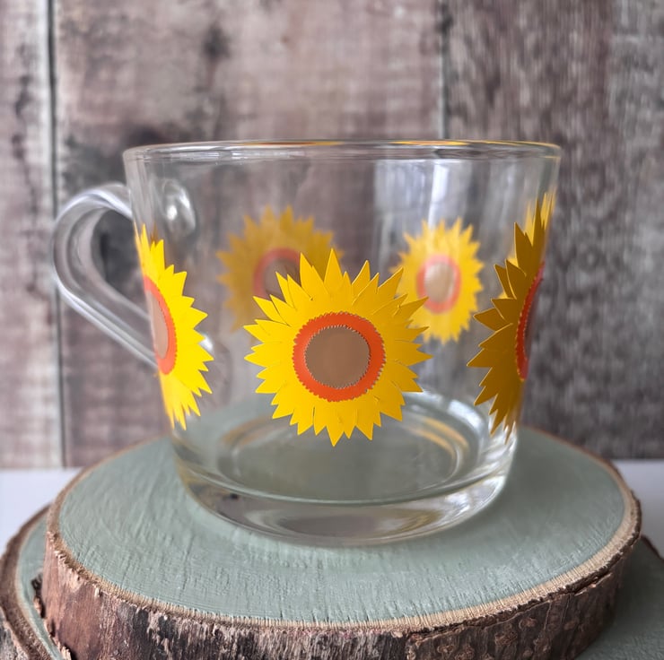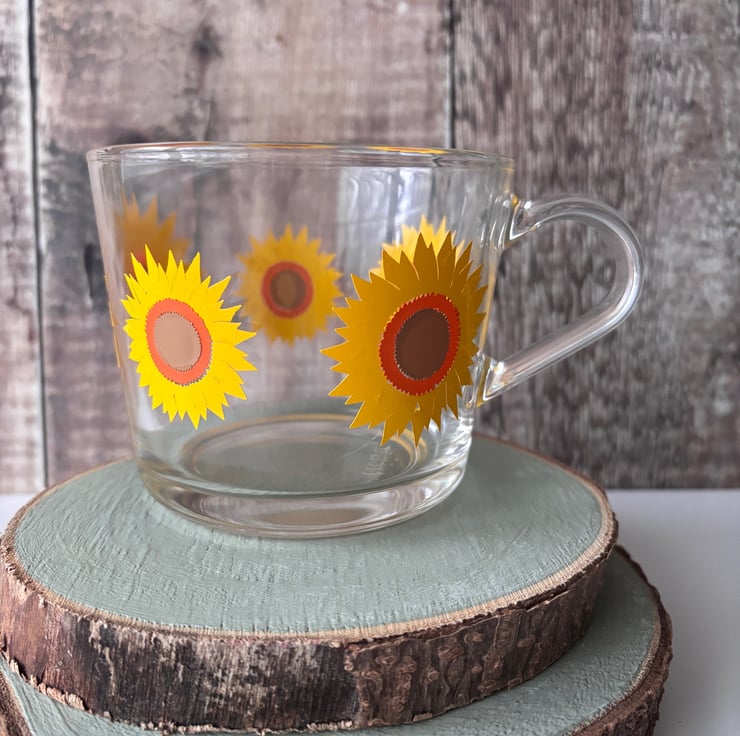 HAND CRAFTED FLORAL GLASS MUG - Sunflower