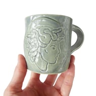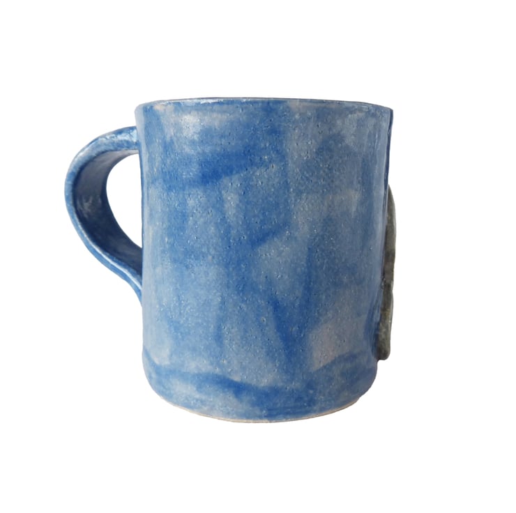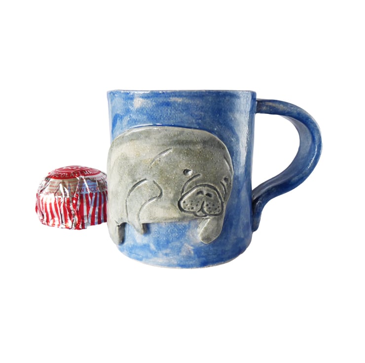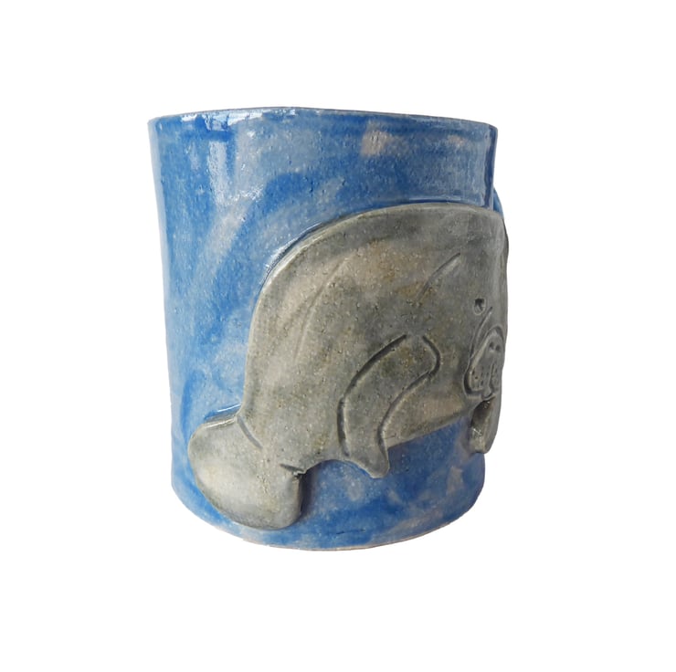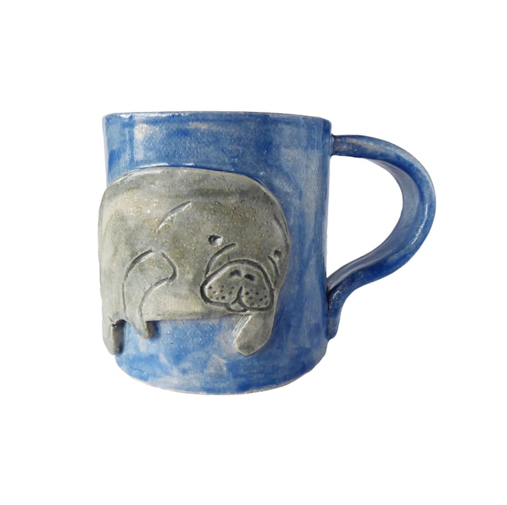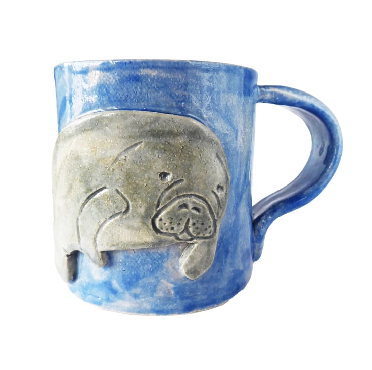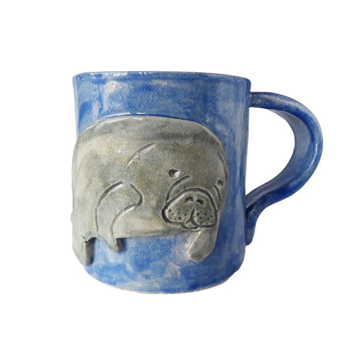 Manatee Stoneware Pottery Mug. Hand Built from Scratch with Relief Manatee Decoration.