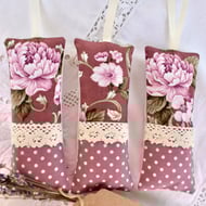 I have hand and machine sewn these pretty lavender sachets using breathable cotton fabrics.