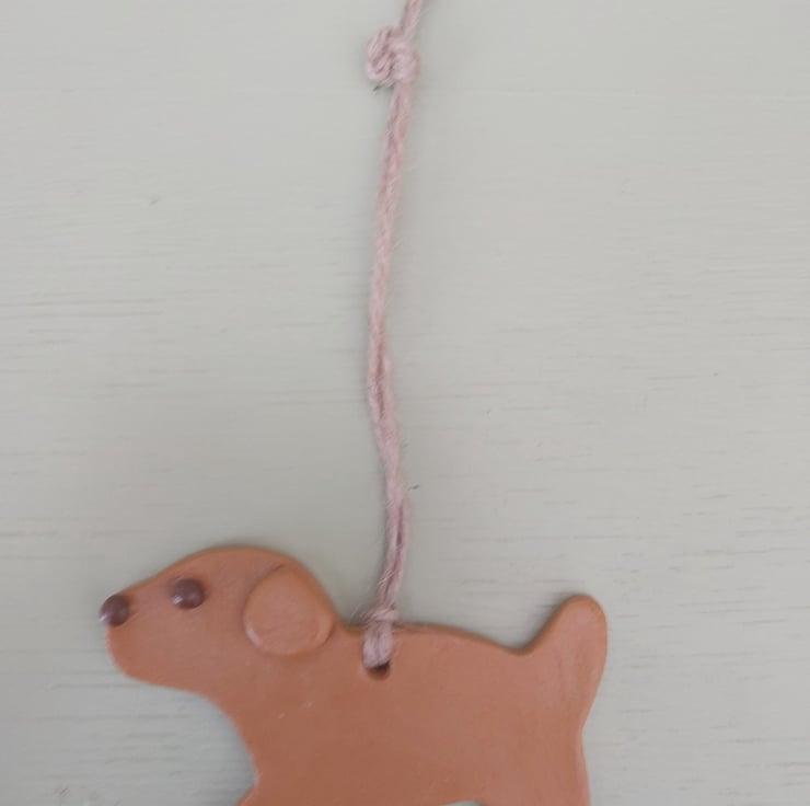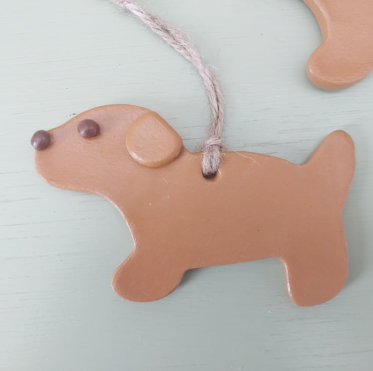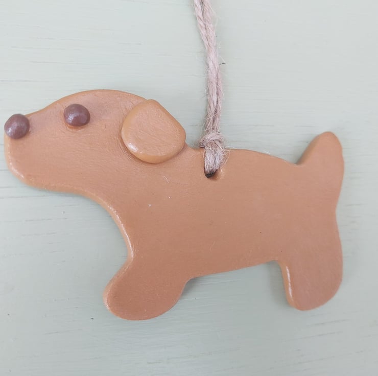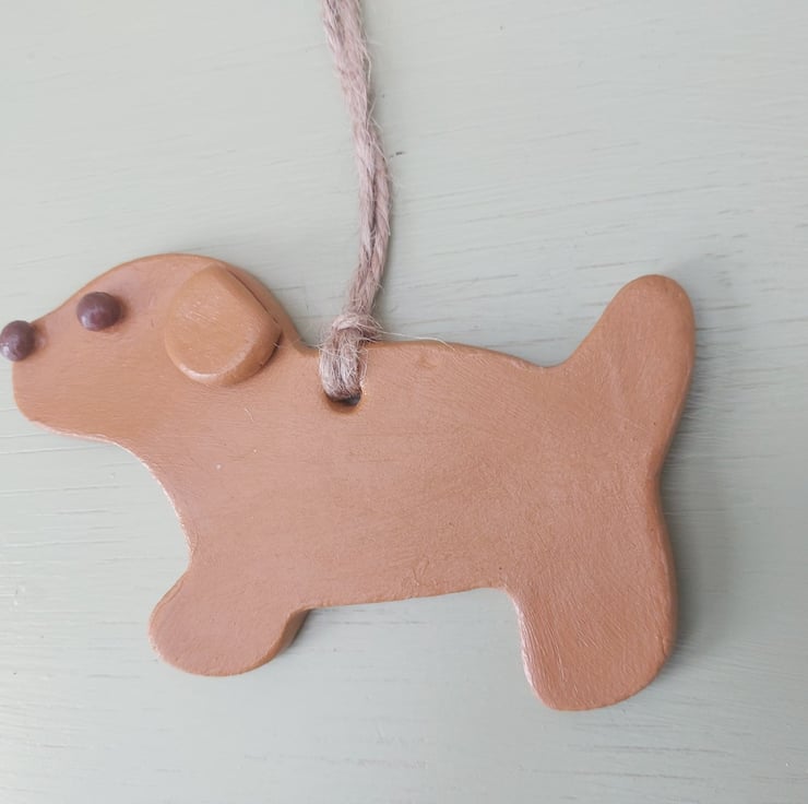 Handmade Clay Dog Ornament - Rustic Hanging Decor