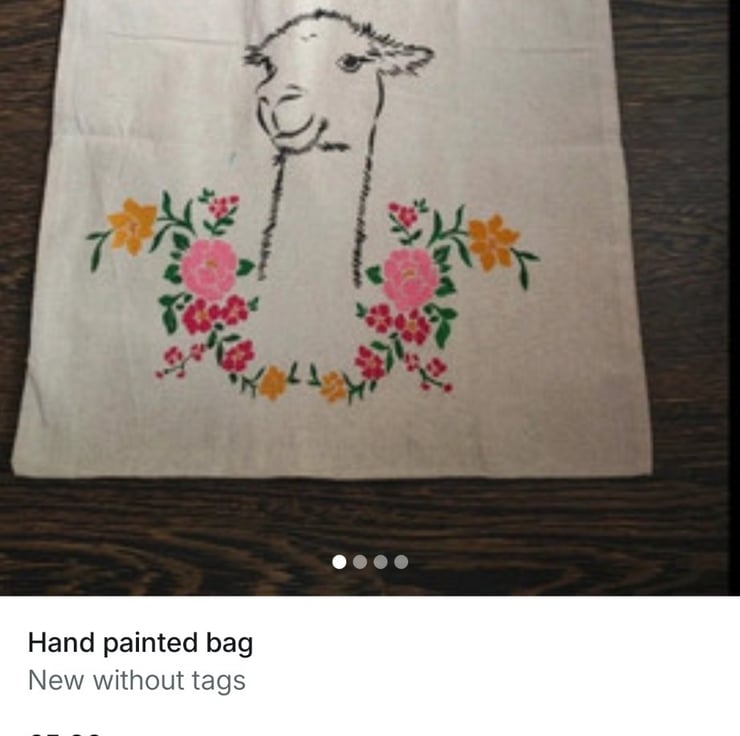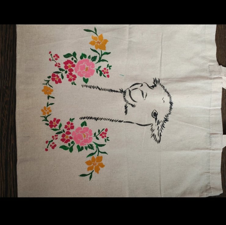 Cotton tote bag with a great design hand painted on the front. Great as a gift or a gift bag or for shopping or to put your laptop in.