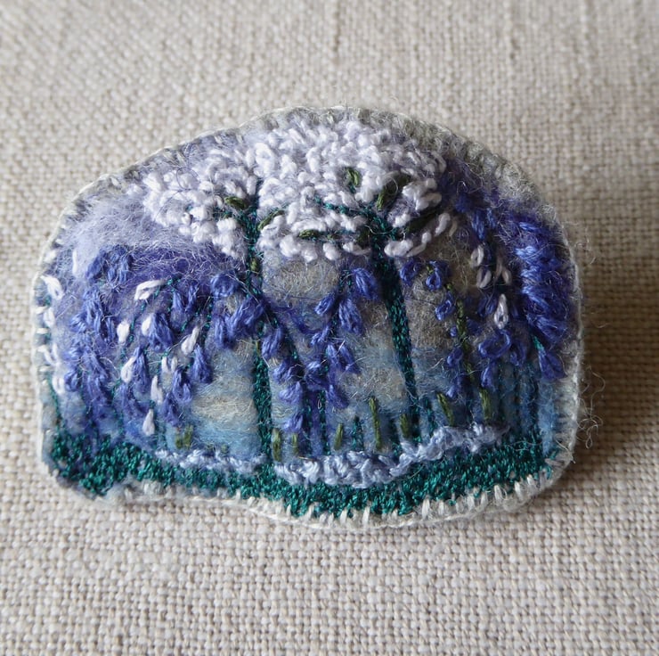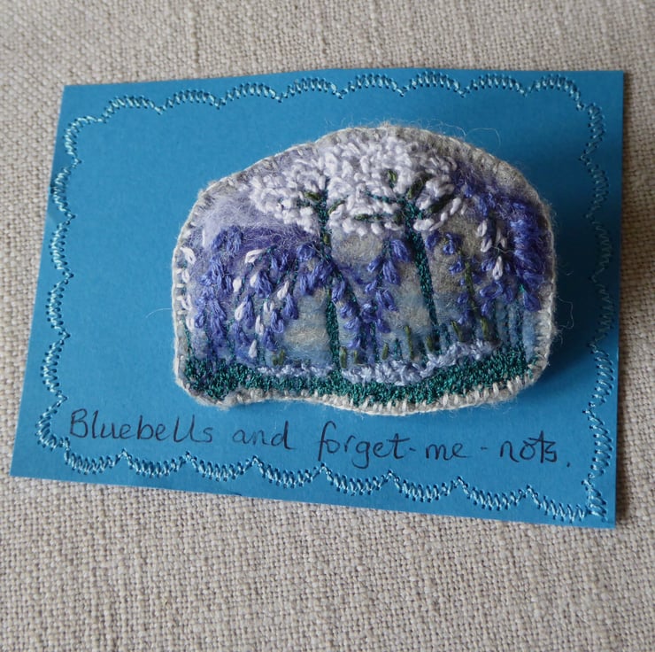 Bluebells and forget me nots design, hand embroidered, felted brooch.