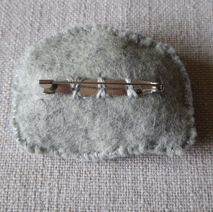 Wool roving in blended blue colour shades felted onto a grey base felt sheet then hand embroidered to create a textured art piece for you to enjoy wearing.