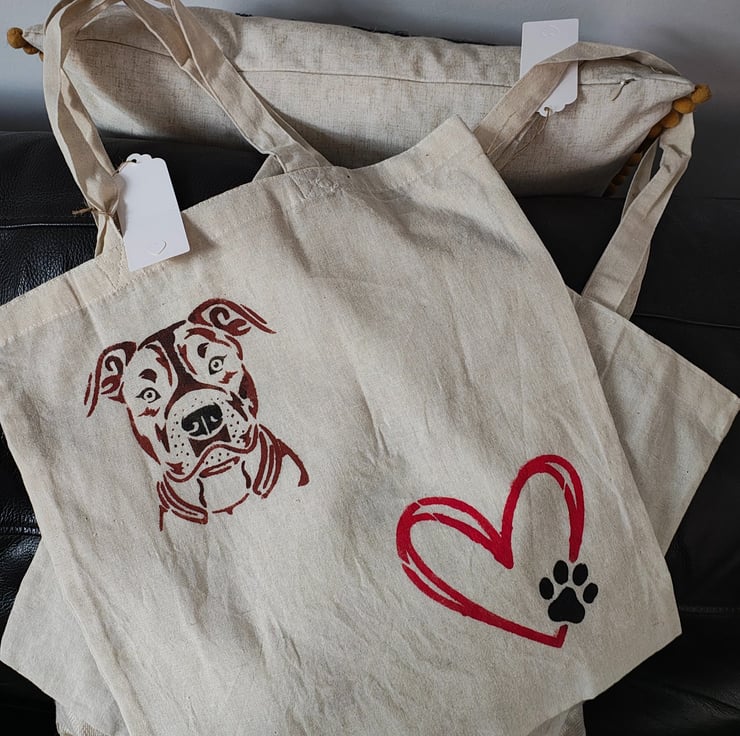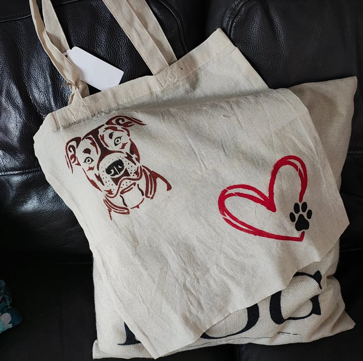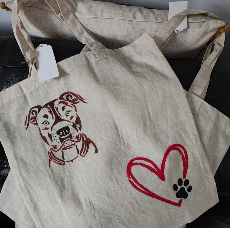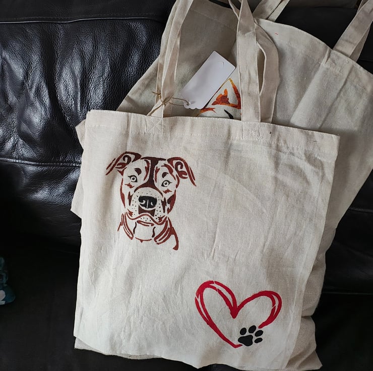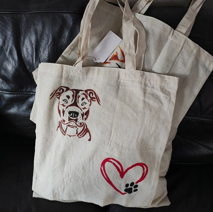 Cotton tote bag with a great design hand painted on the front. It would make a great gift or gift bag or you could use it to go shopping with.