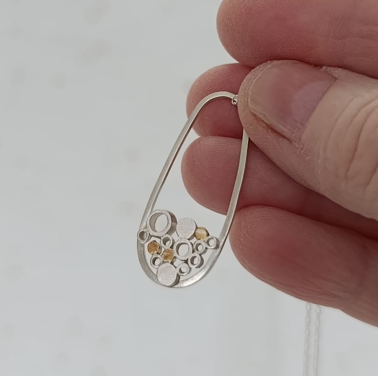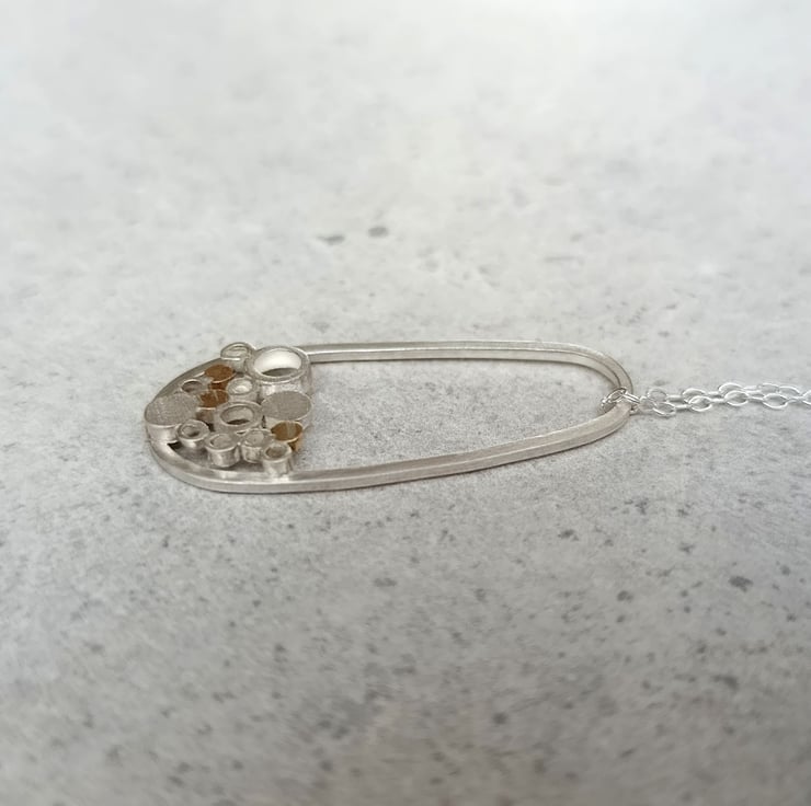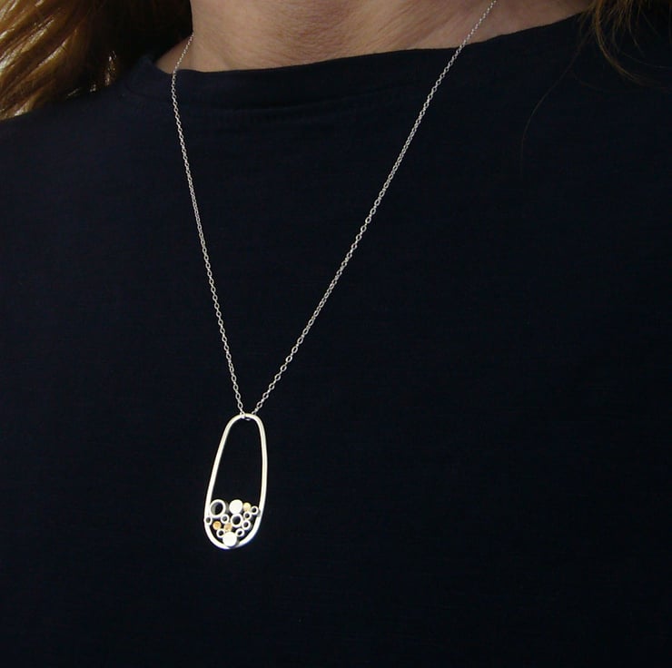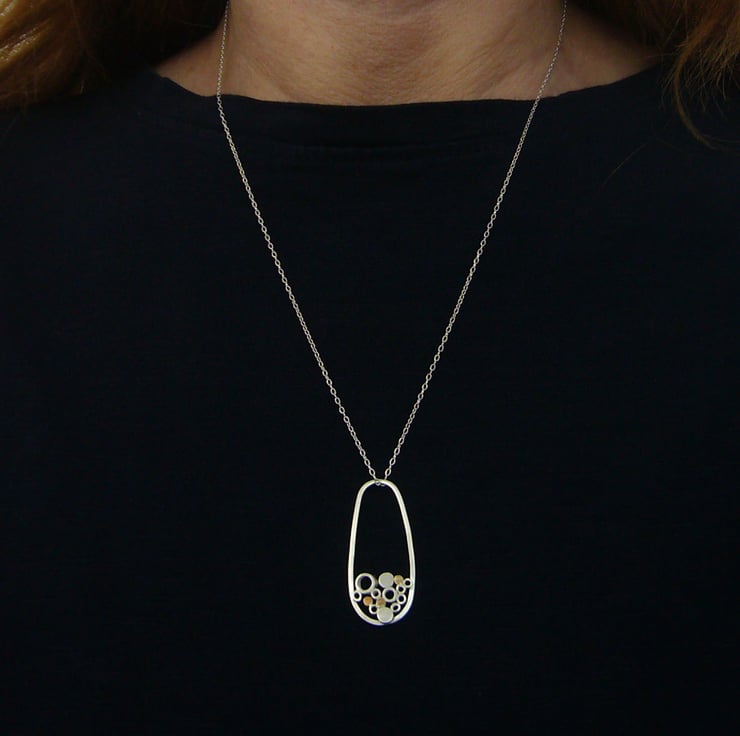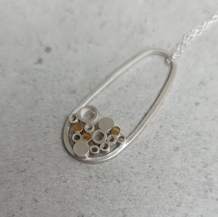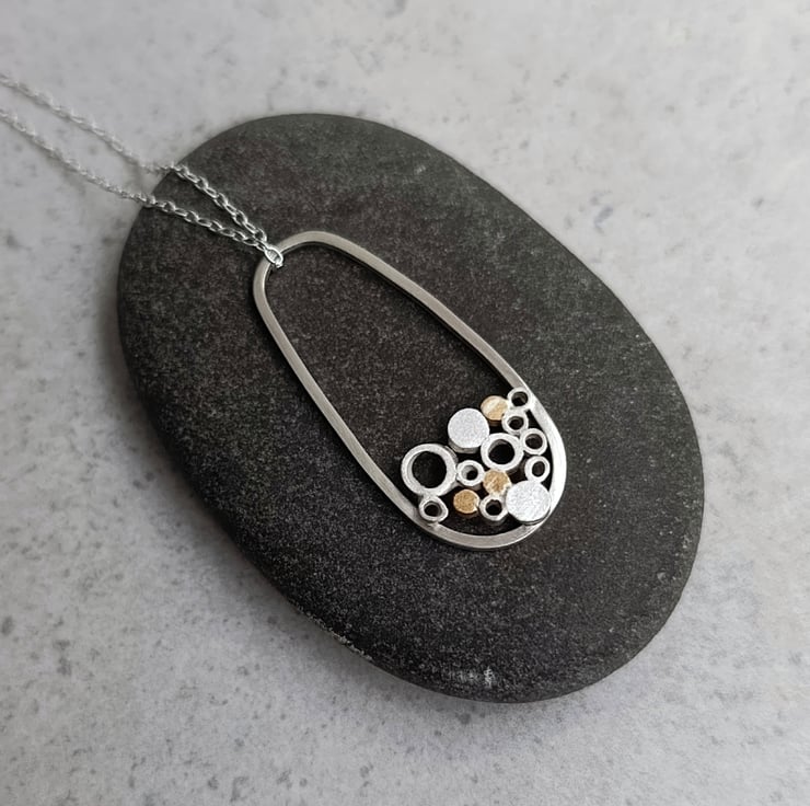 Are you looking for a new piece of unique jewellery? This contemporary sterling silver and filled gold mini circles cluster pendant would be perfect for someone who loves minimalist accessories and can be worn as either an everyday necklace or for a special occasion.