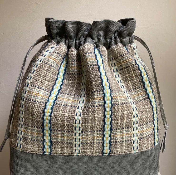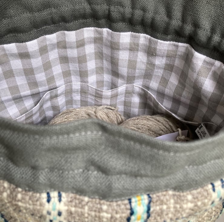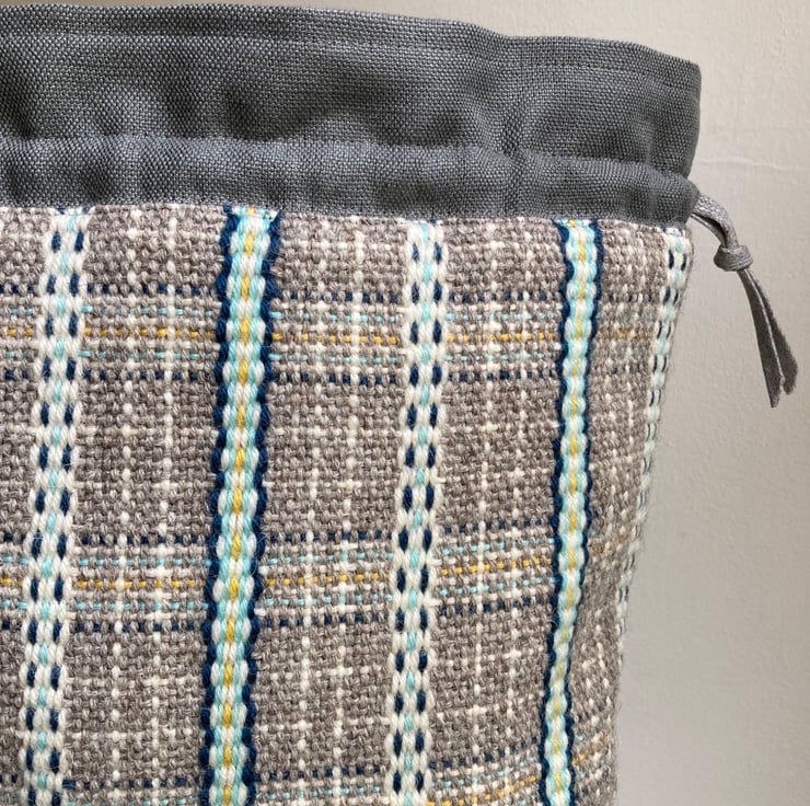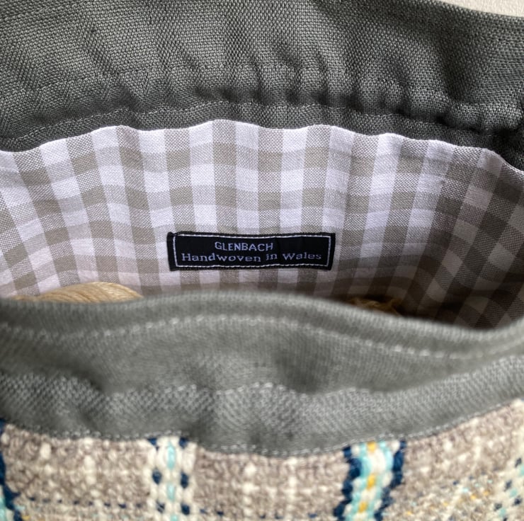 Our woven cloth is complemented with a Laura Ashley linen fabric in dark steel grey and fully lined with a pale grey gingham linen/cotton fabric, which has 3 useful pockets.