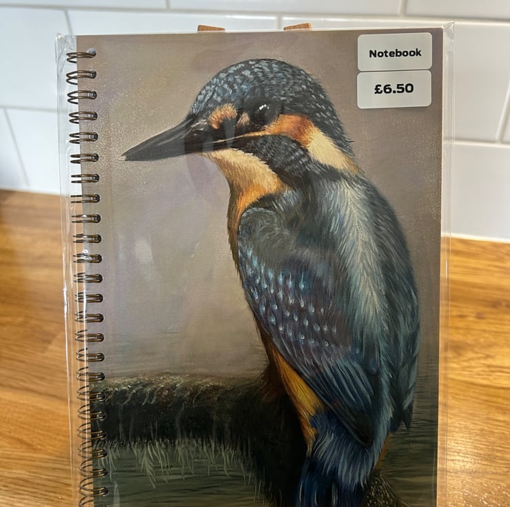 Notebook in an A5 size - Ideal for a journal/scrapbook or even can be used for drawing due to the nice thickness of the paper. The design is based on my original painting "River Sapphire", which was inspired by this kingfisher sitting by his riverside home. An ideal gift for someone who loves these beautiful creatures.