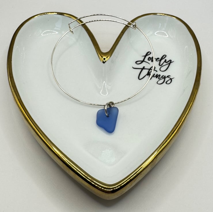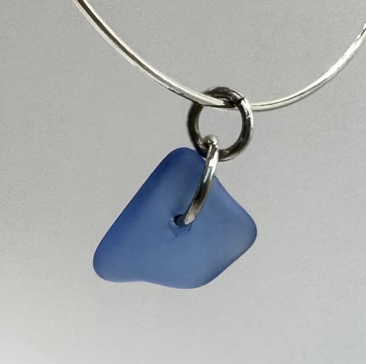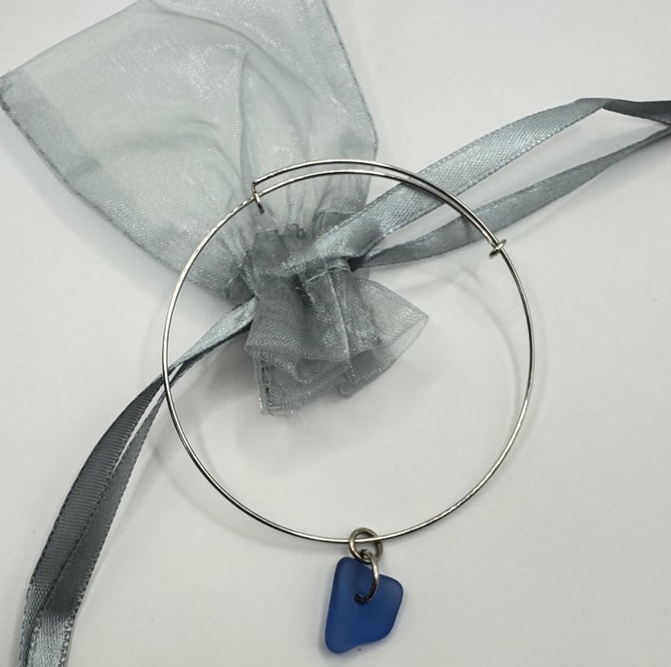 Sterling Silver Bangle with stunning piece of blue, Scottish sea glass.