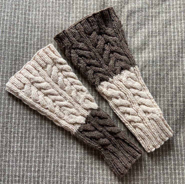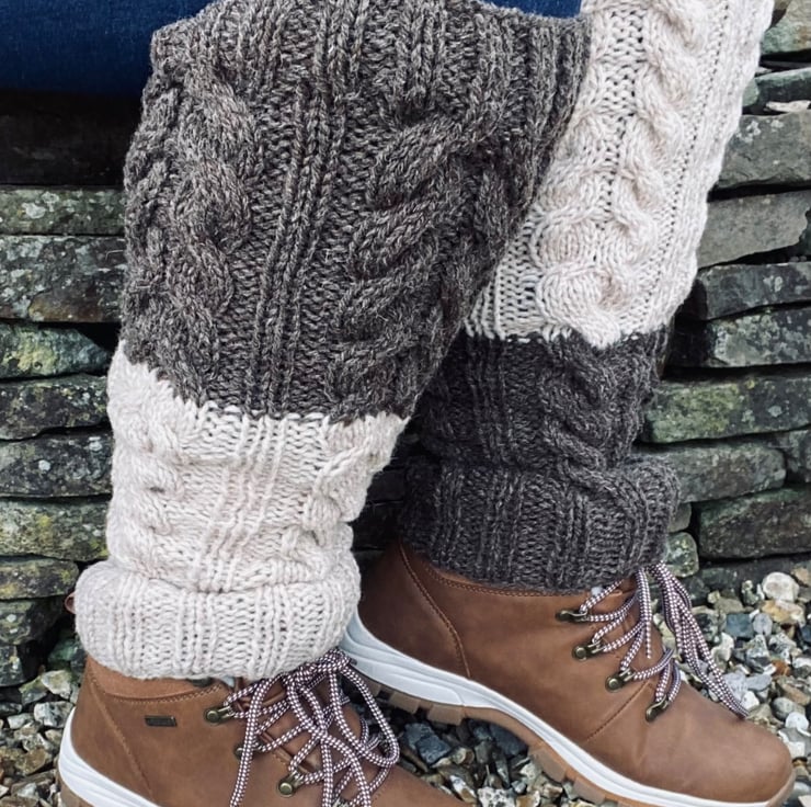 A lovely pair of hand knitted wool leg warmers. Knitted in a beautiful 100% wool in cream and brown.