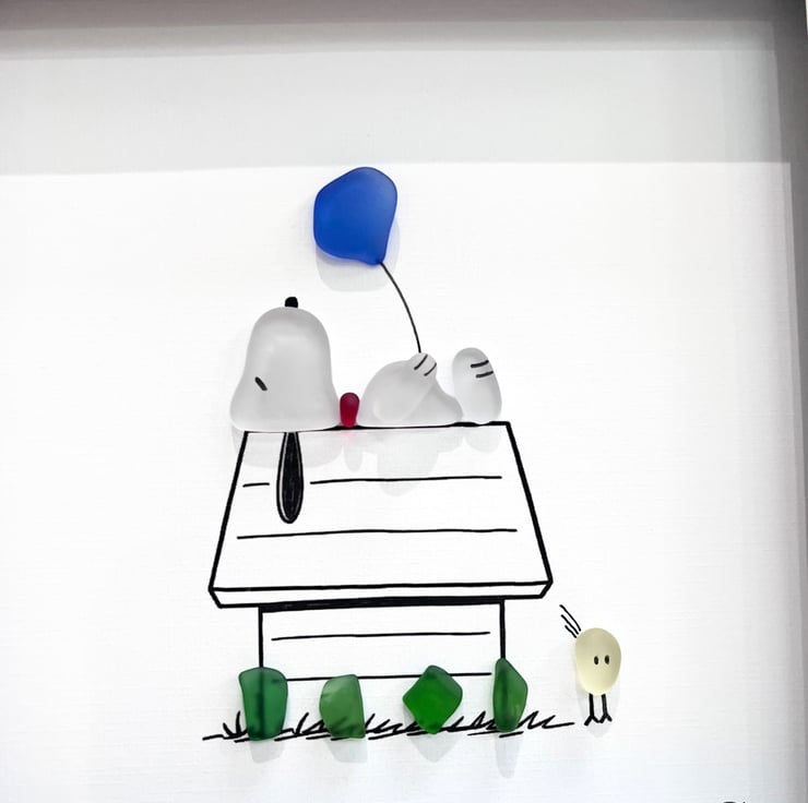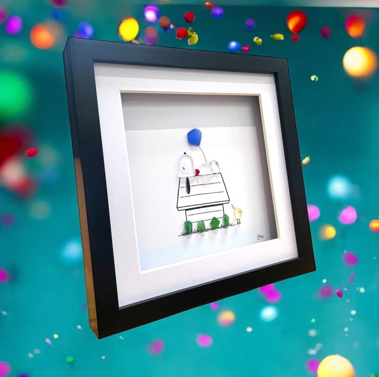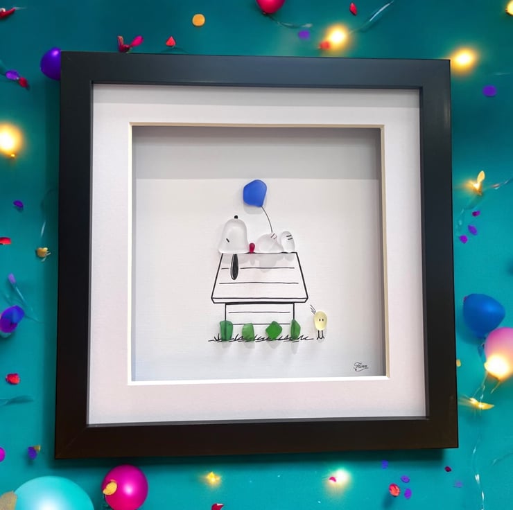 Made from Devon sea glass, 22.5 x 22.5 x 3cm wall mounted glass art, it can also be supplied with a white or black frame, please choose in the option below.