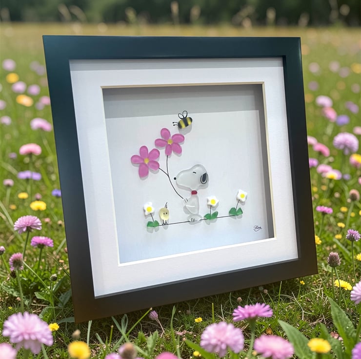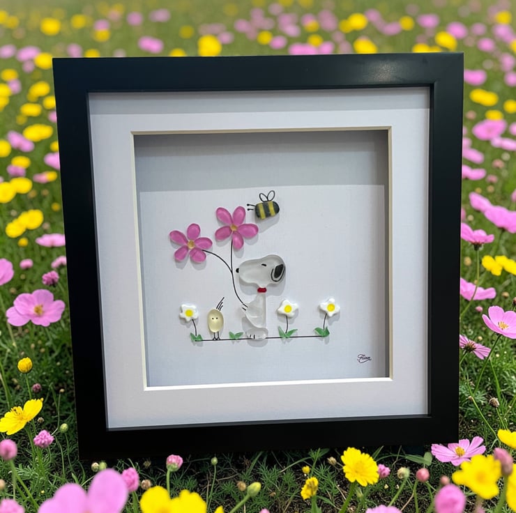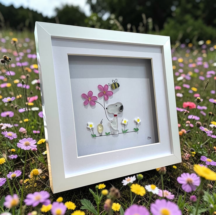 Made from Devon sea glass, 22.5 x 22.5 x 3cm wall mounted glass art, it can also be supplied with a white or black frame, please choose in the option below.