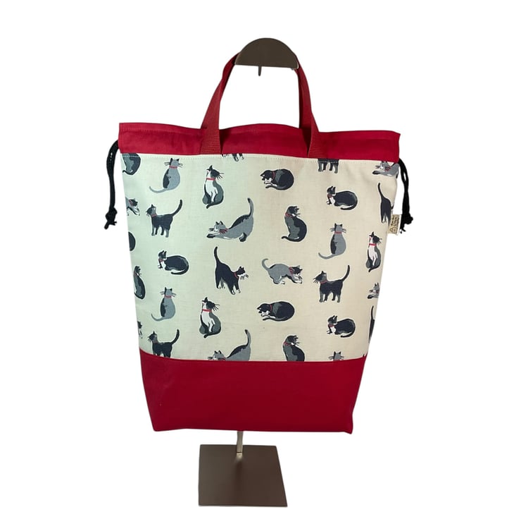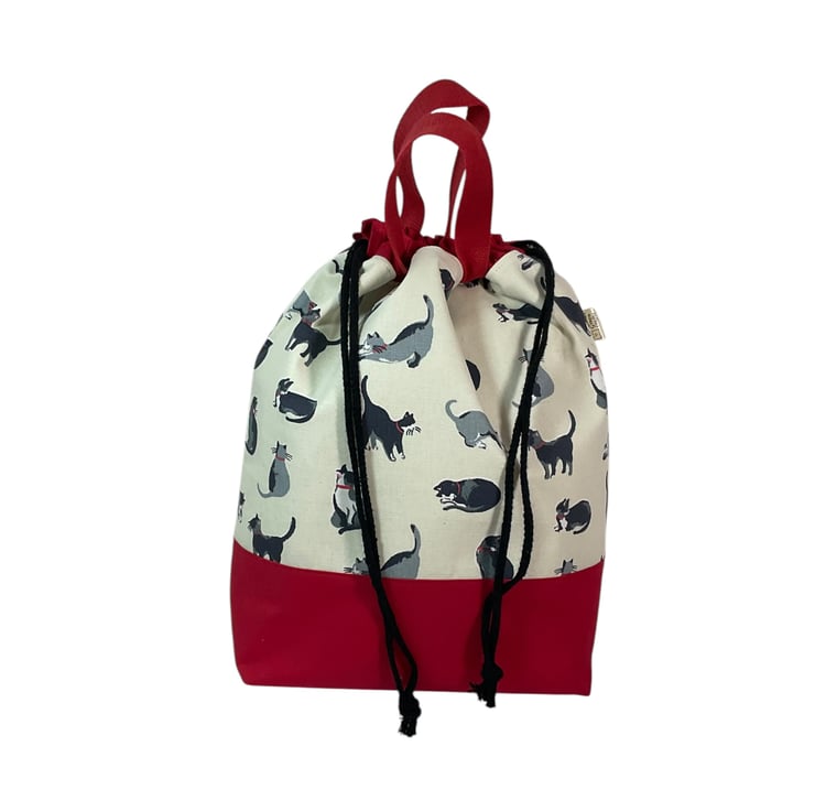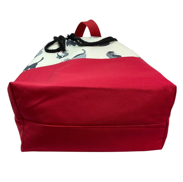 The main fabric is a black white and grey cat print on a cream coloured base and I have paired it with a red heavyweight canvas cotton.